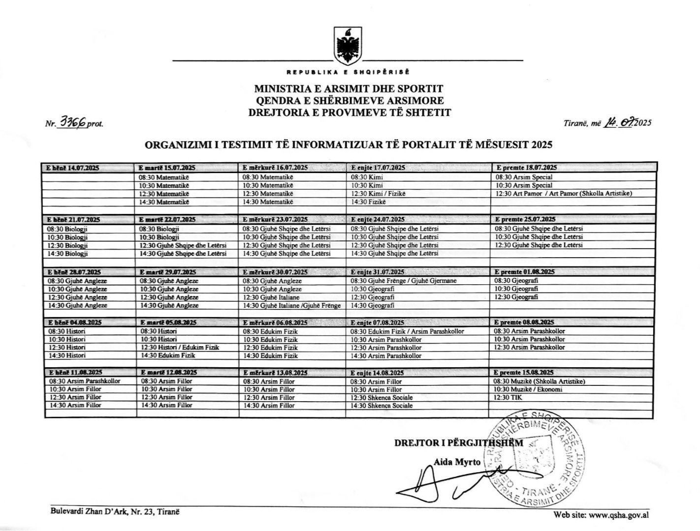 Njoftim Kalendari i Organizimit të Testimit të Informatizuar të Portalit të Mësuesit 2025
