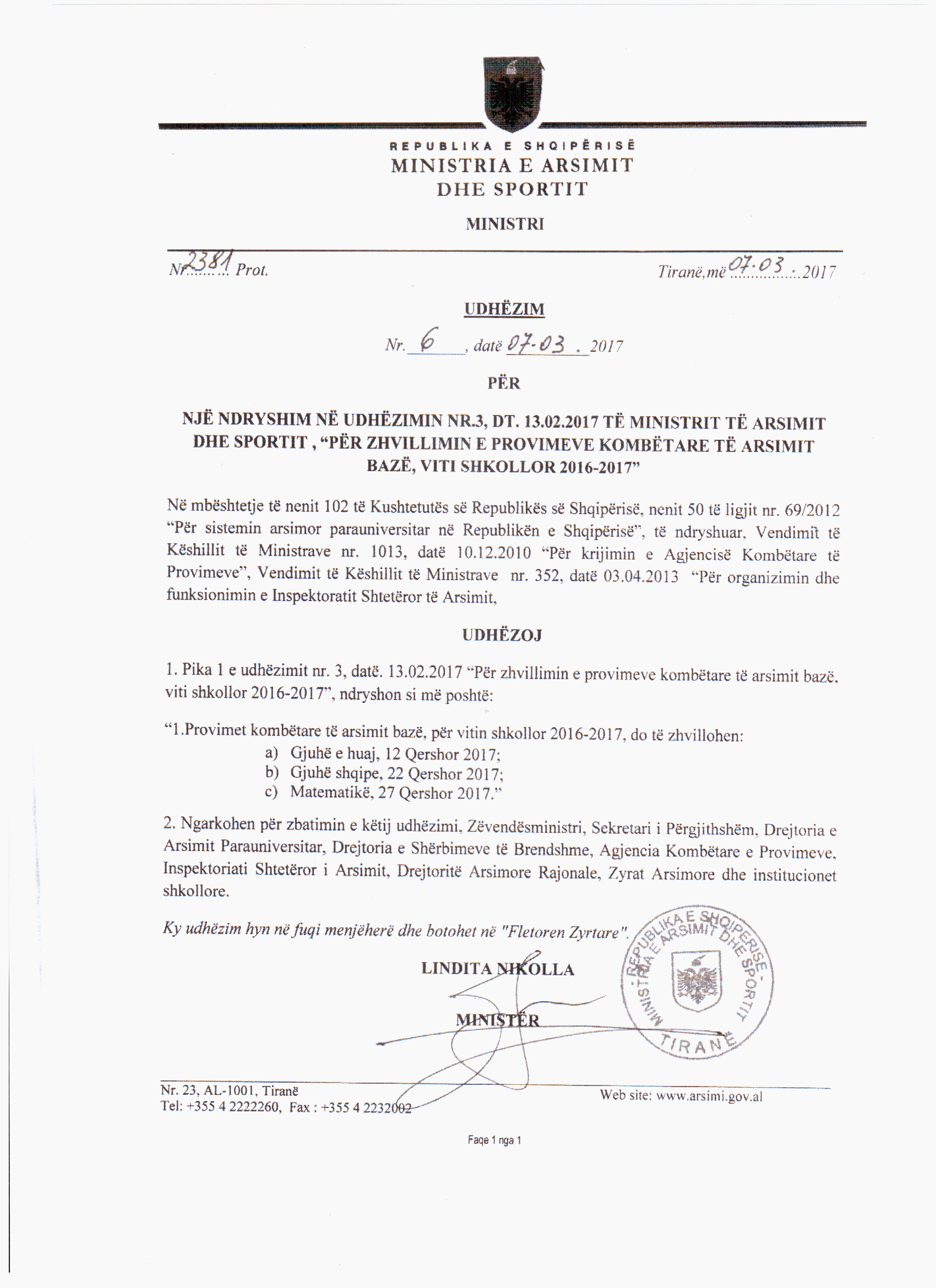Ndryshime ne datat e provimeve PKAB 2017
